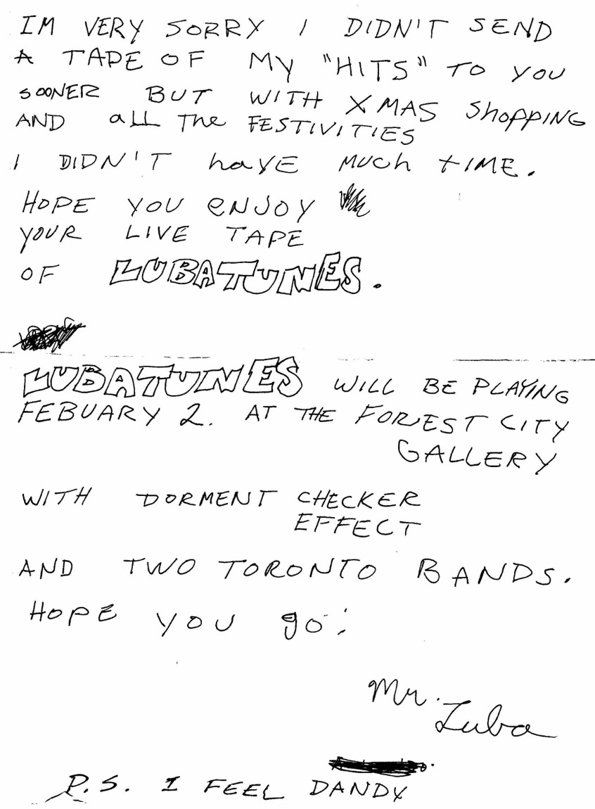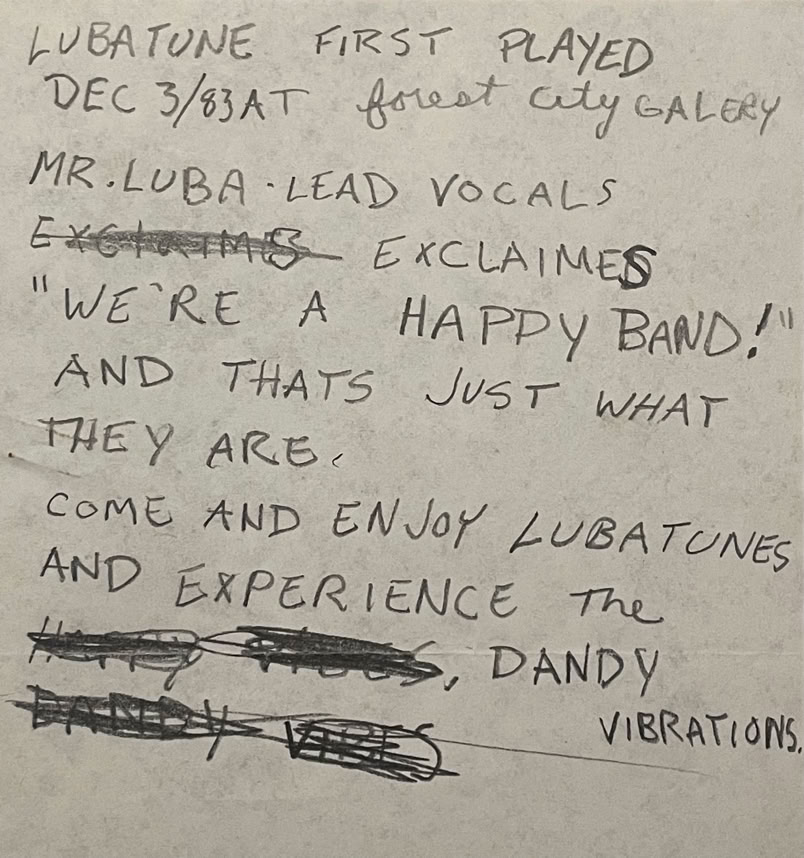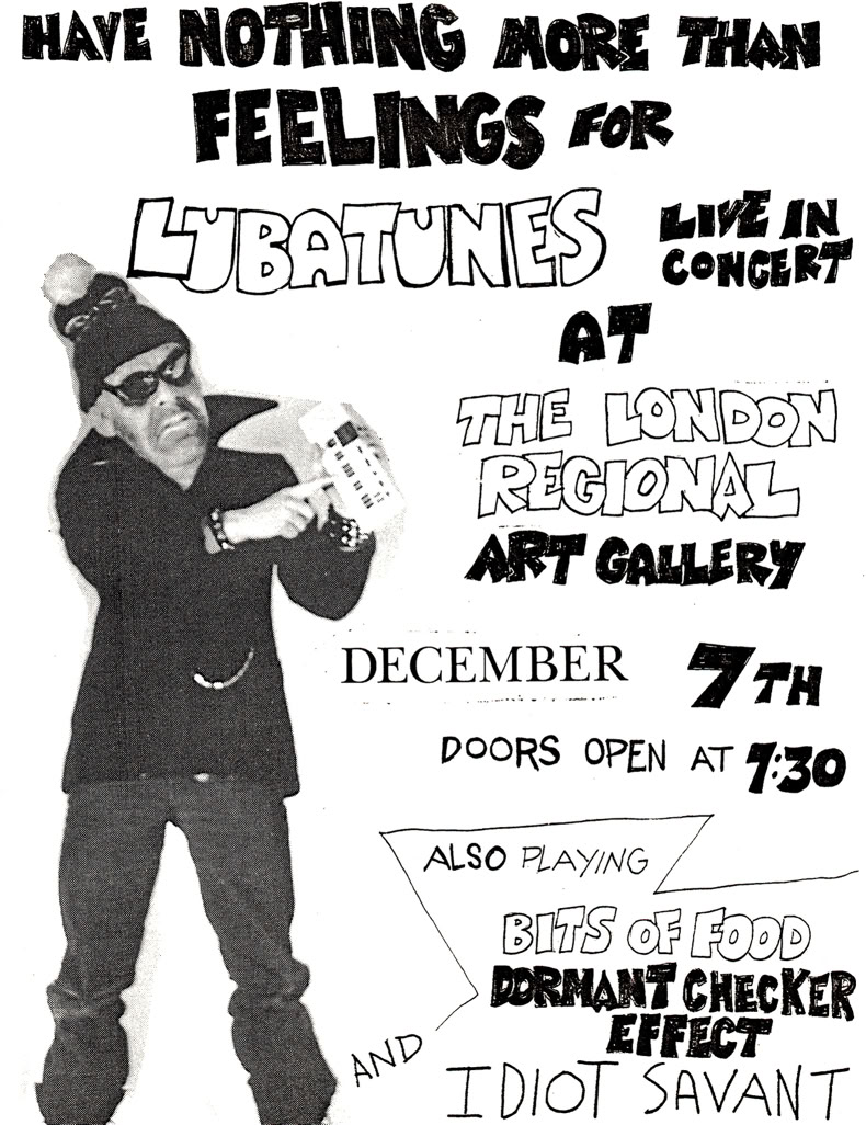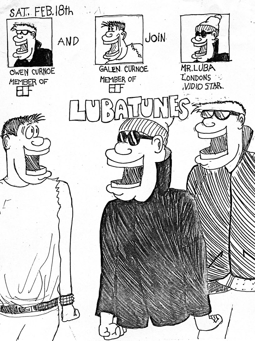 (1983-1986) Mr.Luba providing vocals, Owen Curnoe playing casios & drums, and Galen Curnoe playing guitar & drums.